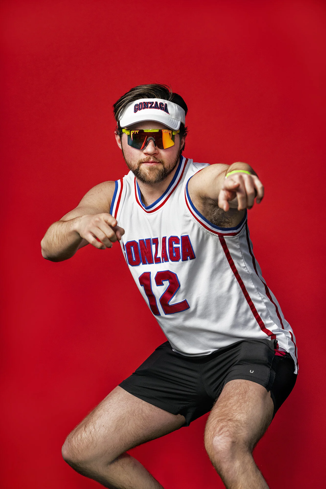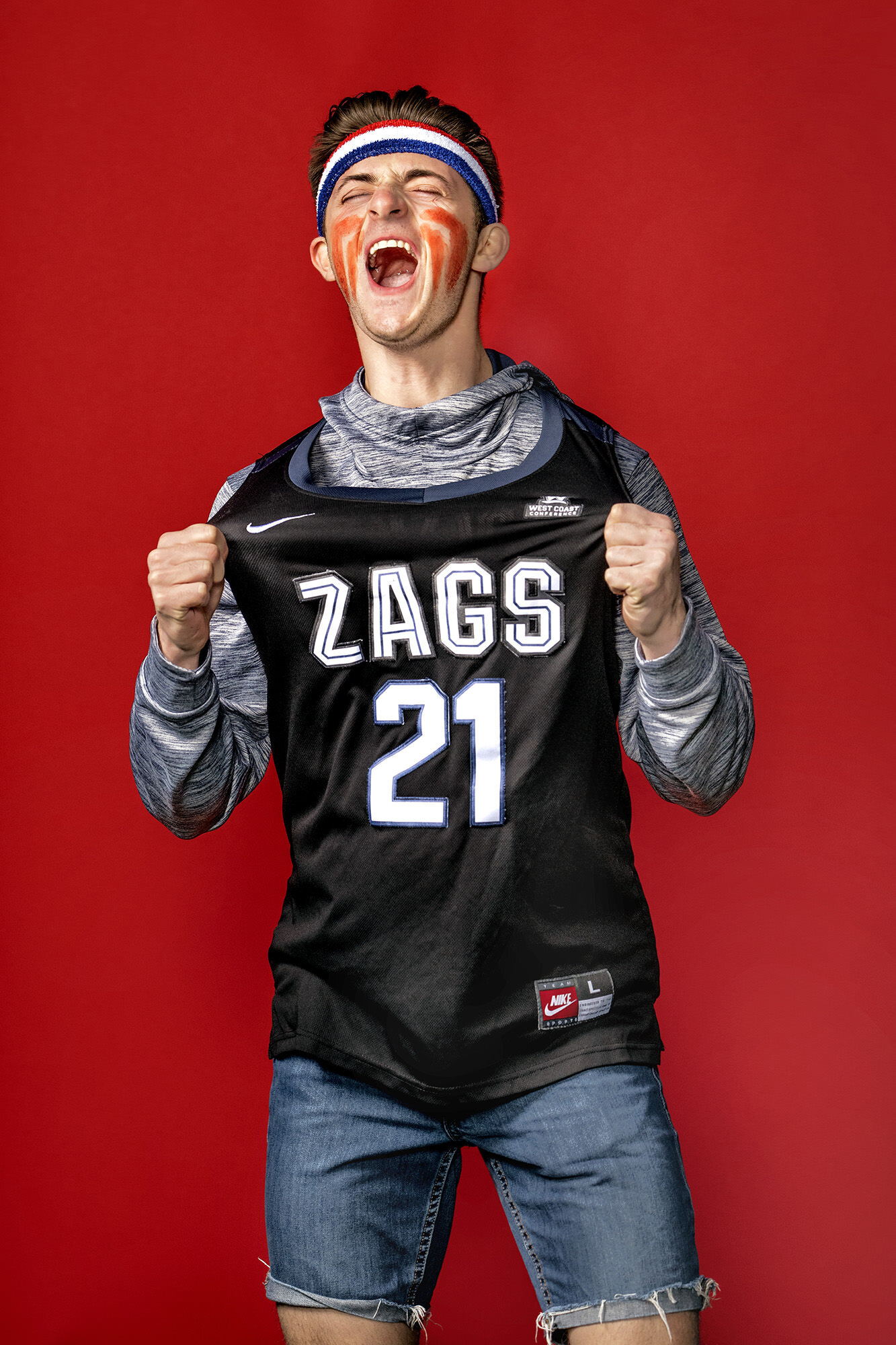 I’ve had this idea in my head for a year or so. Gonzaga’s student section at basketball games is among the craziest in the nation and it keeps getting wilder. Each year there are more and more outlandish costumes, outfits, and signs. I wanted to capture the energy of this experience away from the game environment so I set up a roll of red paper and some lights outside the arena before a big game.
